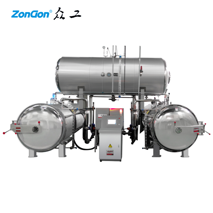 生產(chǎn)成本。兩臺殺菌鍋同時使用一罐熱水工作,比雙層殺菌鍋產(chǎn)能提高一倍。
